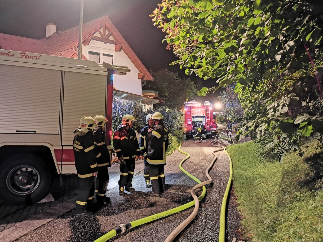 Der Einsatz wurde auf B3 hochgestuft worauf folgende Einsatzkräfte alarmiert wurden. Um ca. 3 Uhr konnte der Einsatz beendet werden.