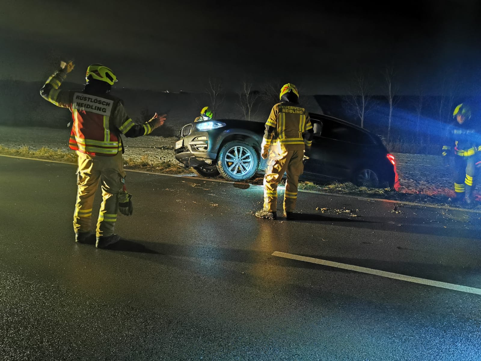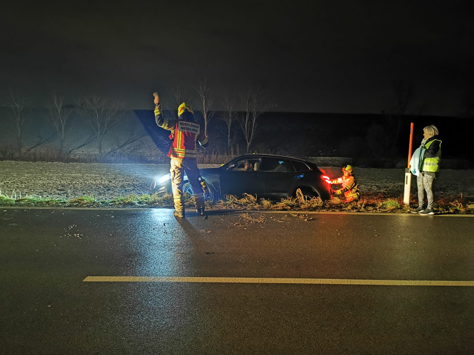 Bei unserem Eintreffen wurde der schwarze BMW im Straßengraben hängend vorgefunden und musste mittels Seilwinde wieder zurück auf die Straße gezogen werden. Das Fahrzeug wurde nur geringfügig beschädigt und die Fahrzeuglenkerin konnte das Fahrzeug selbst nachhause lenken.