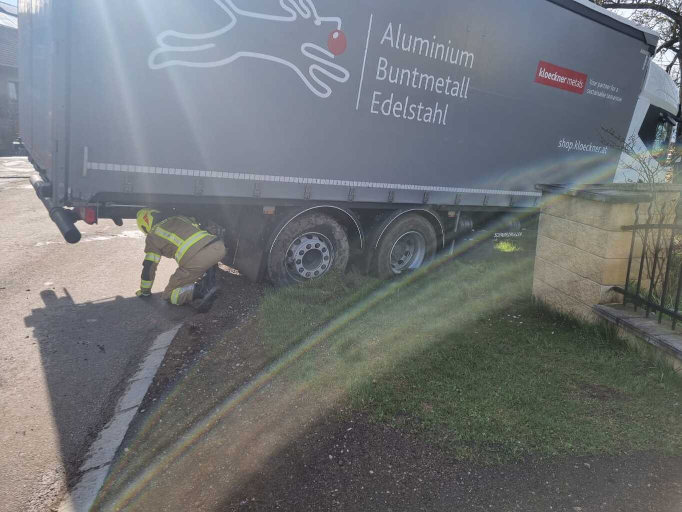LKW auf Abwegen: Zu einem technischen Einsatz in Flinsbach wurden wir am 12.04.2023 9:20 gerufen.