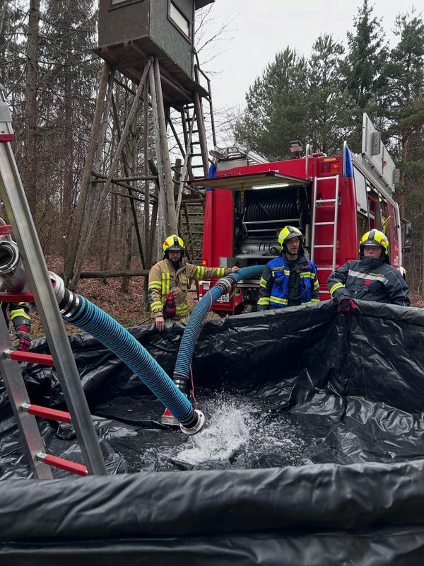 Ein besonderer Schwerpunkt lag auf dem Aufbau einer langen Zubringerleitung sowie der Sicherstellung einer zuverlässigen Wasserversorgung in schwierigem Gelände. Über eine Strecke von rund 600 Metern, ergänzt durch zusätzliche Höhenunterschiede, wurden die Einsatzkräfte sowohl technisch als auch körperlich gefordert.