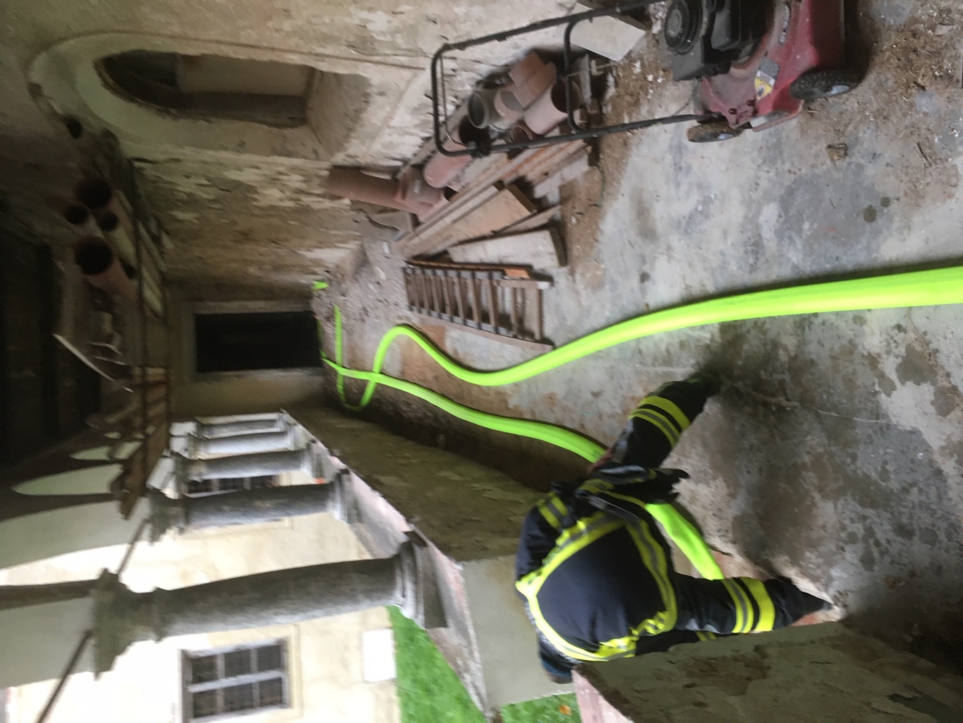 Übungsaufgabe war über unterschiedliche Wege Löschleitungen zu einem angenommenen Zimmerbrand zu legen und die Zusammenarbeit zu trainieren.