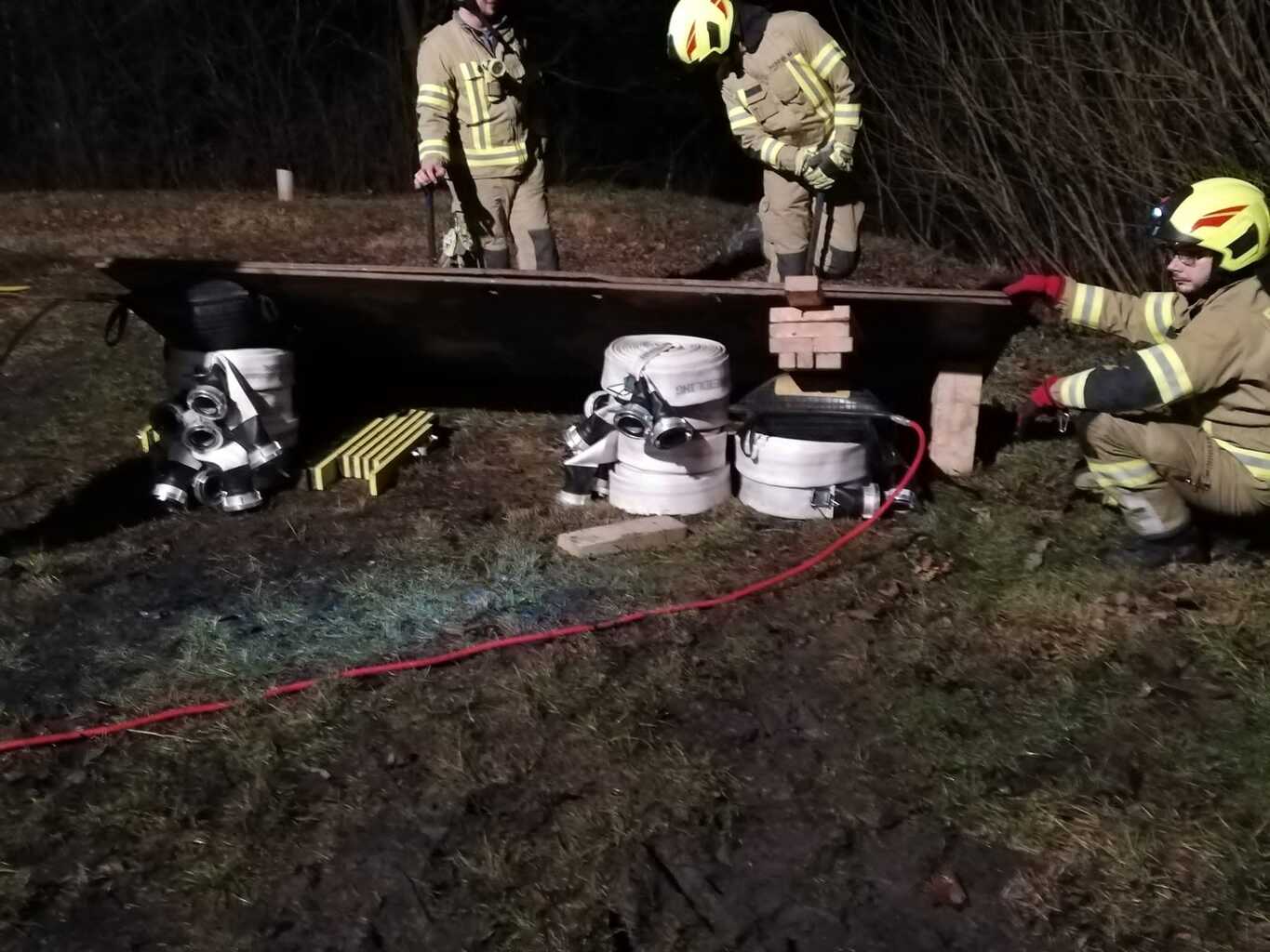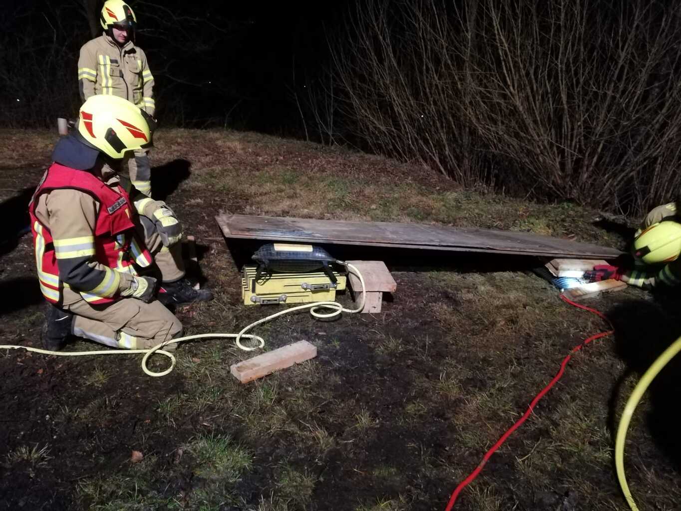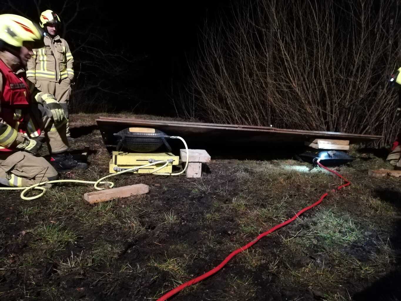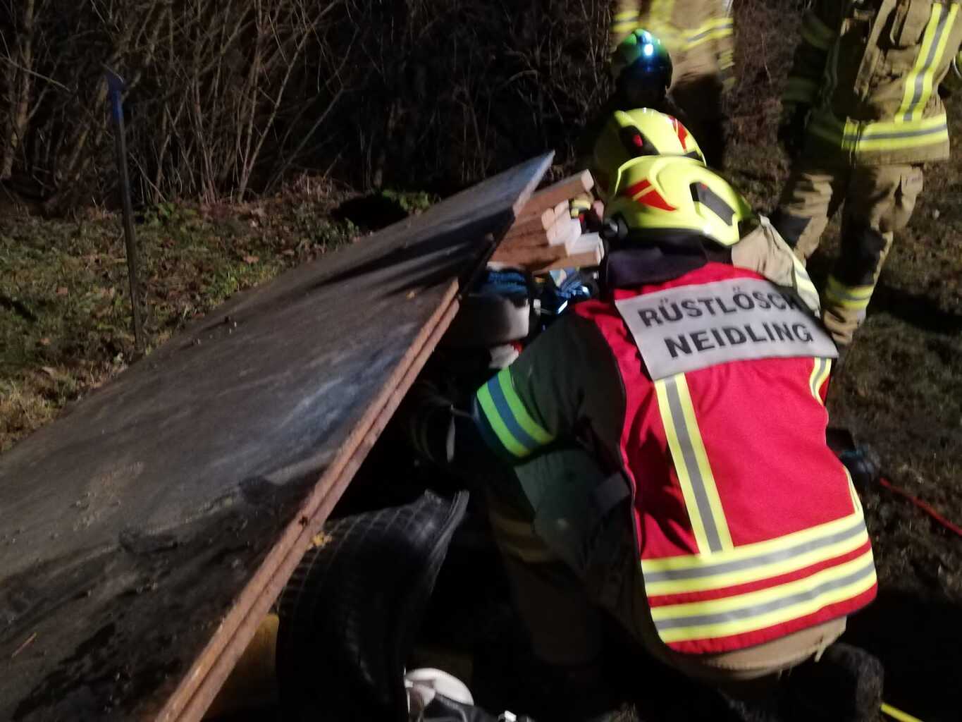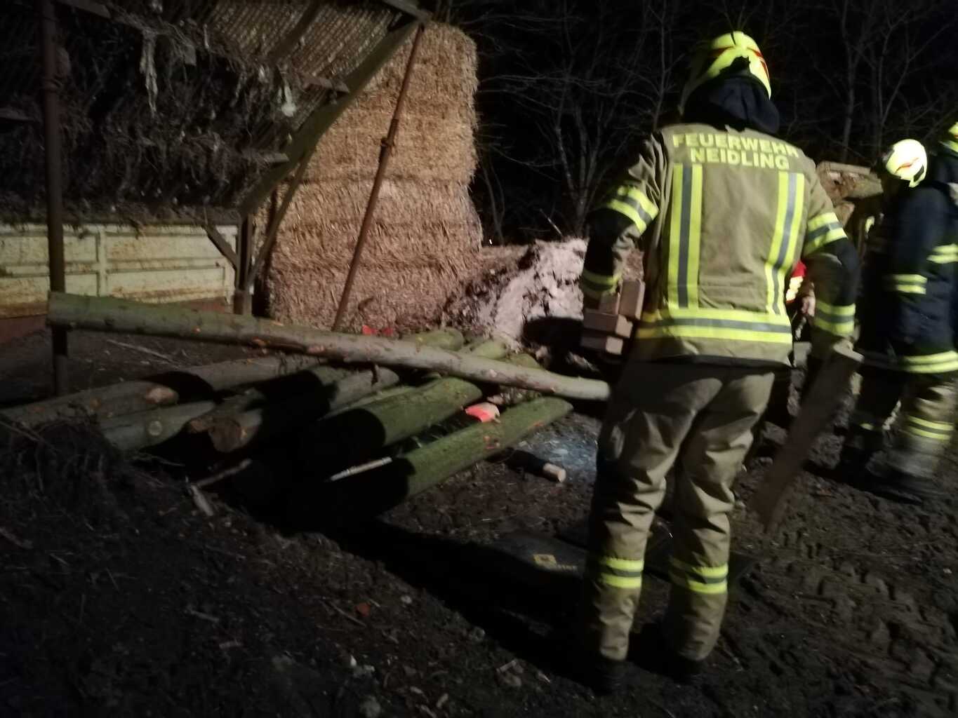 So auch bei der Gestrigen. Wie die Fotos zeigen, war ein Traktoranhänger umgekippt und zwei Personen wurden einerseits von großen Baumstämmen überrollt und andererseits kam eine Person in einem Schacht zu liegen. Dieser Schacht war durch vom Hänger gerutschte schwere Blechtafeln nicht frei zugänglich. Diese Fallbeispiele, die von Stefan Götzinger und Stefan Steindl vorbereitet waren dienten den Umgang mit Hebewerkzeug zu zeigen und zu verfestigen.