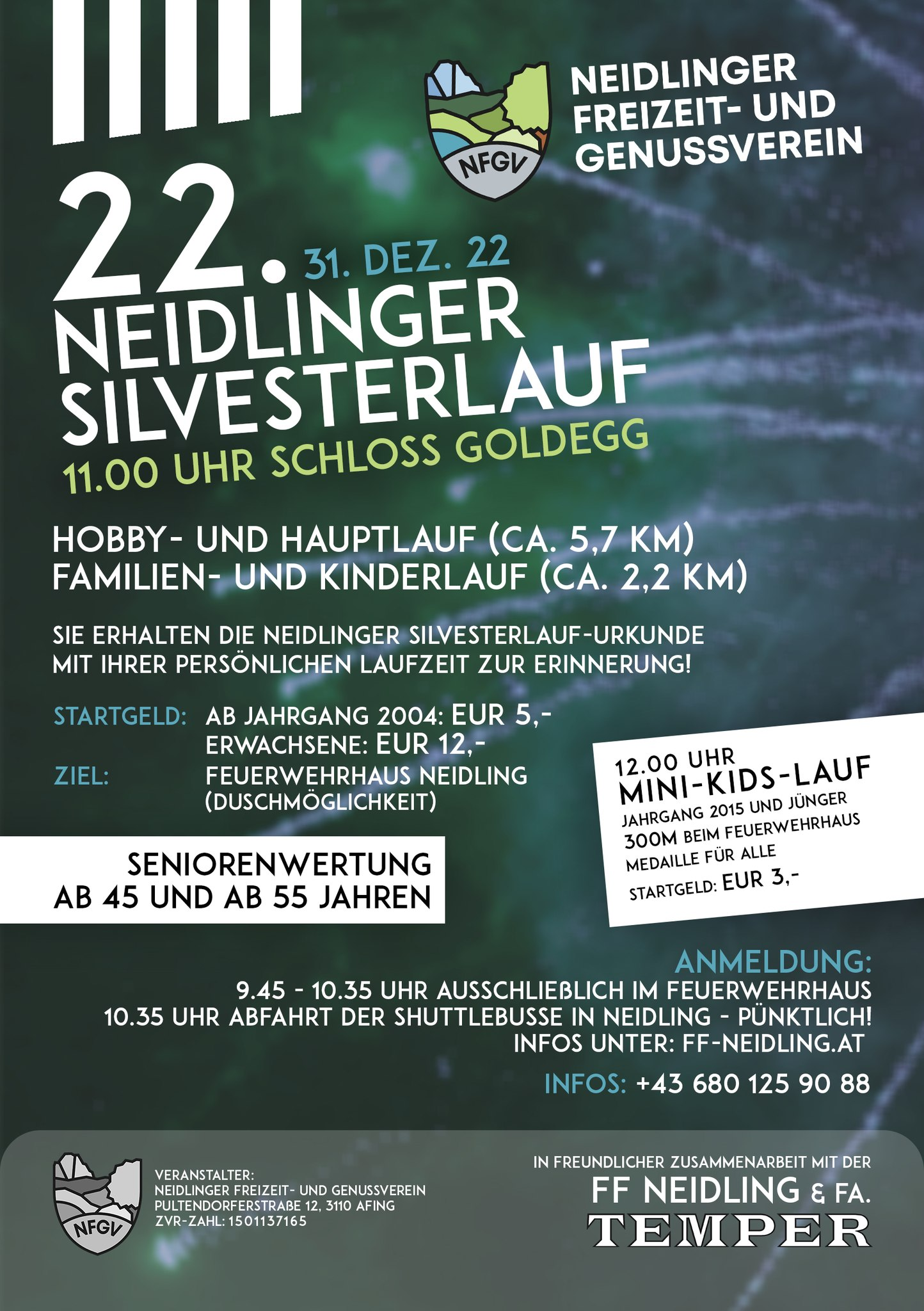 Endlich konnte der traditionelle Neidlinger Silvesterlauf wieder stattfinden. Nach pandemiebedingten Absagen in den letzten beiden Jahren, freuten wir uns über zahlreiche Teilnehmer am nunmehr 22. Lauf.