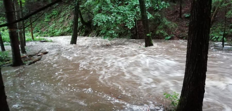 Unwetterweinsatz: Der starke Niederschlag auf den schon gesättigten Boden am Nachmittag und Abend des 18.7.2021 ließ die Kremnitz zu einem reißenden Gewässer ansteigen.